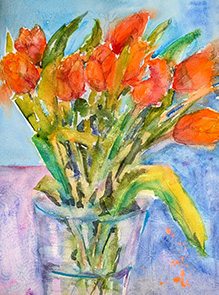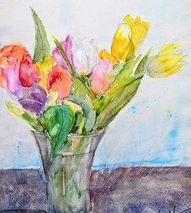 Erste Tulpen, Aquarell 40×30