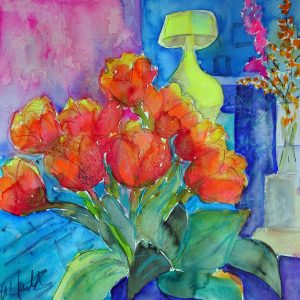 Blaue Vase, Aquarell 21×29 cm
