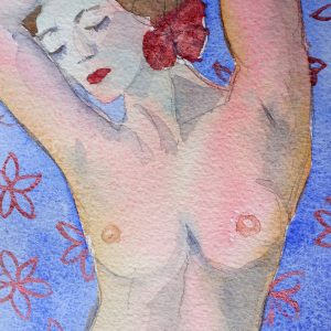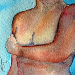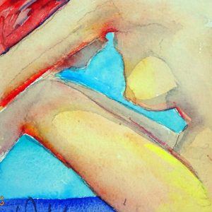 Es handelt sich um ein kleines Aquarell von 12×17 cm. Golden  gerahmt auf 19×24 cm.
